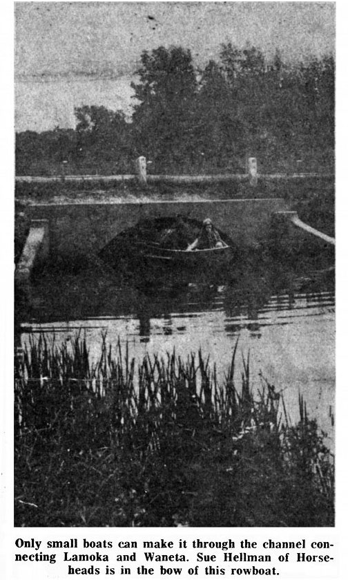 The early part of the 20th century, the electric light bulb and the telephone became available in commercial quantities, and the demand for electricity to run them grew and grew. In 1915, the Lamoka Power Company began to acquire land in the Waneta-Lamoka lake area and plans were drawn up to create a dam in the area of Savona, south of the lakes, which would raise the water levels of the lakes by up to 15 feet, forming a great reservoir. The two lakes lie some 385 feet above the level of Lake Keuka, and a canal was dug in 1928 from the north end of Waneta to Lake Keuka which was intended to draw water from the reservoir to generate electricity. Although the idea of a huge reservoir never came to fruition, the canal drove two turbines at a power plant built on the shore of Lake Keuka in Keuka Village. The flow of the two lakes was reversed, water that had flowed south into the Cohocton river to the Susquehanna, and then to Chesapeake Bay was now flowing north to Lake Keuka, then to Lake Seneca, and ultimately to the St. Lawrence seaway. The stream between Waneta and Lamoka has been modified over the years. The construction of the original Bradford dam at the southern outlet of Lamoka Lake around 1793 resulted in a rise in the lake level that flooded much of the flats on either side of the Waneta outlet. In the nineteenth century, one could see the areas along the shore "now covered with mud, bushes, and water - where, in an early day, was the gravelly beach of Lake Lamoka." Nevertheless, during a particulary dry summer in 1938, accompanied by the great draw of the Keuka power plant, the level of Waneta lake dropped so low that people played baseball at the north end of Waneta on what was once the lake bottom. Residents of the area were so concerned by the variations in the lake level that they gathered together at the Crane's Nest, then owned by Robert Clark, on a warm day in August of 1938 to form the Lamoka-Waneta Lake Association in order to address the problem.