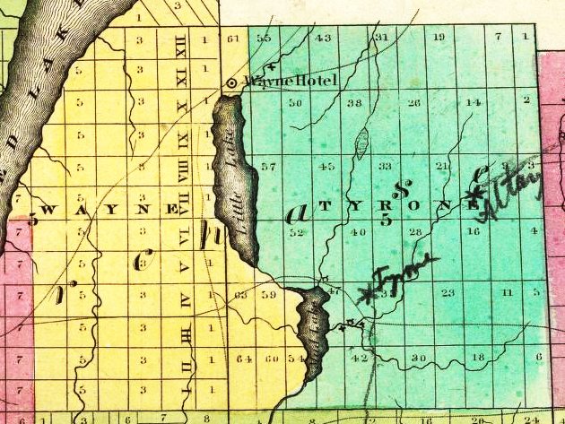 In 1828, John B. Mitchell purchased a plot of land, in what was then the town of Wayne, from Matthew McDowell and soon after built one of the oldest structures in Wayne Village, Tyrone, generally known as "The Corner Store", at the corner of Rt. 230 and 87.