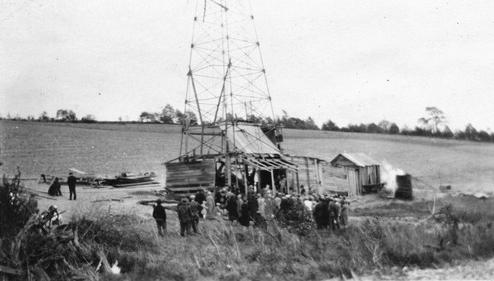 On February 27, 1930, the Belmont Quadrangle Drilling Corporation struck a pocket of natural gas on the farm of Emmett Pulver, about four miles east of Wayne Village in the town of Tyrone. The gas erupted from the well with a great roar at a rate of six to seven million cubic feet per day, or, in dollar terms, nearly $6,000 per day. In today's dollars, this amounts to about $90,000 per day. For a farming community in the midst of the Great Depression, this was an enormous amount of money. The Pulver strike was unlike anything ever seen in the area. It was just the first of hundreds of similar strikes to follow, mainly in the northern part of the Town of Tyrone, and to a lesser extent in the northeast corner of the Town of Wayne, and also along the southern border of Barrington. It soon became clear that a great dome of gas-bearing shale lay beneath the area. While the rest of the country was in the throes of the depression, the gas boom of the early thirties was just beginning for the residents of this area, and brought the promise of enormous amounts of money to the local economy. With this discovery, a frenzy of leasing erupted in the area surrounding Wayne Village, with many other gas and drilling companies vying for drilling rights in the area. A vivid description of Wayne Village during this time was given in the Corning Evening Leader, April 15, 1931: The Eveland No. 1 which came in today, is concrete evidence of the seriousness of the town lot drilling campaign under way at Wayne, which bristles with derricks and is full of flowing gas wells. With the bit suspended in the top of the hole at noon today, the shriek from escaping gas was so loud it could be heard for miles. The roar sounded like an immense waterfall from within the houses of residents of the Village. By the end of 1932, exploration phase had ended. The boundaries of the field had been fairly well established and all that was left was to collect the gas and distribute it to consumers, some as far away as Buffalo, NY. By 1936, as a result of the intensive drilling in the Wayne Village area, the Wayne portion of the field had run dry. In the late thirties and early forties, Harley Crandall bought up many depleted wells which could still supply gas at a low rate, and supplied gas to some customers in the area. He eventually sold the wells to the Columbia gas corporation which now owns many of the old wells in the area. In the 1940's, many gas wells were capped and others were used (and are still used to this day) to pump gas collected elsewhere back into the dome for storage purposes, to be eventually distributed to local customers.